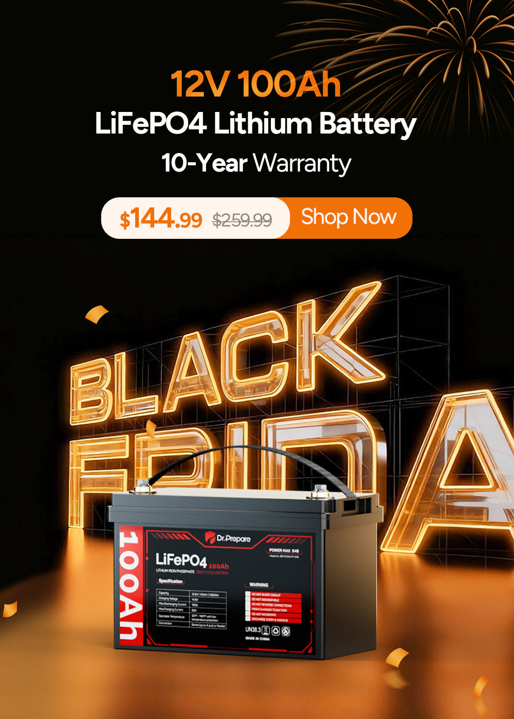 ![Multiple Packs 12V 100Ah LiFePO4 Lithium Battery with LED Screen - Connect In Series [10-Year Warranty]](http://drprepare.com/cdn/shop/files/1._Dr.Prepare_12V_100Ah_lifepo4_battery.jpg?v=1763458125&width=1600)