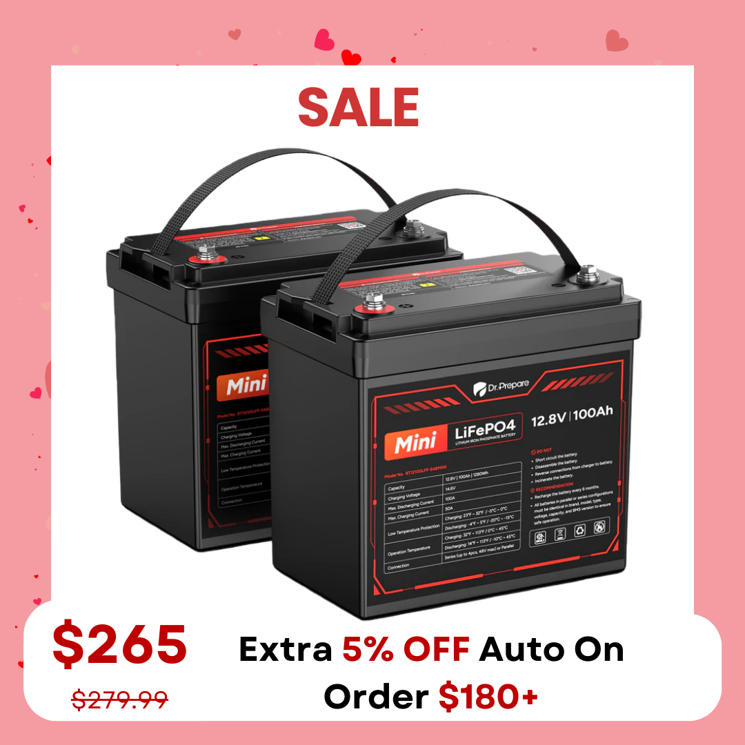 ![12V 100Ah LiFePO4 Lithium Battery - Connect In Series [10-Year Warranty]](http://drprepare.com/cdn/shop/files/100ah_mini.png?v=1770277448&width=800)