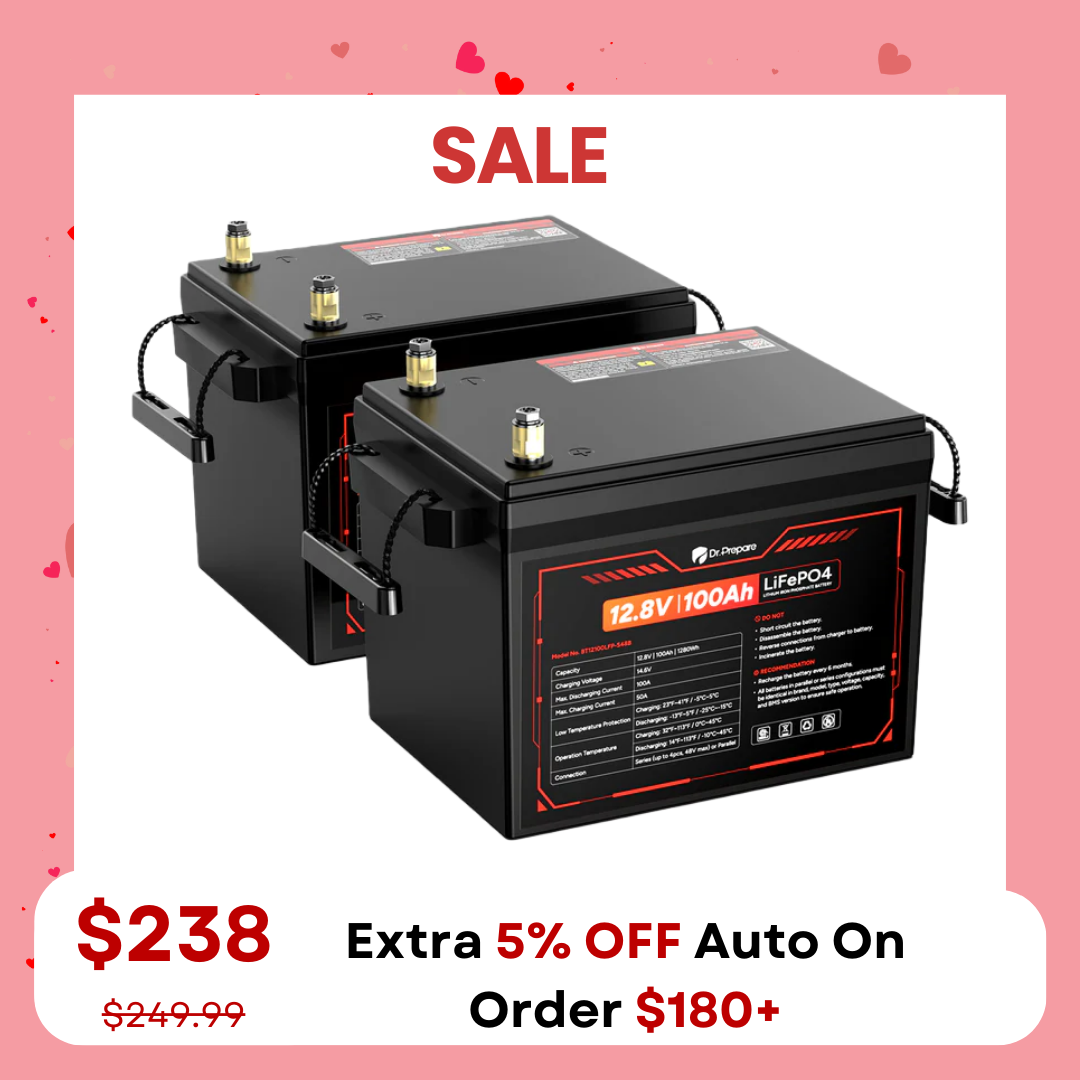 ![Multiple Packs 12V 100Ah LiFePO4 Lithium Battery with LED Screen - Connect In Series [10-Year Warranty]](http://drprepare.com/cdn/shop/files/S48SCX4_f7304347-827f-400b-95ae-4f881da014cf.png?v=1770277986&width=1080)
