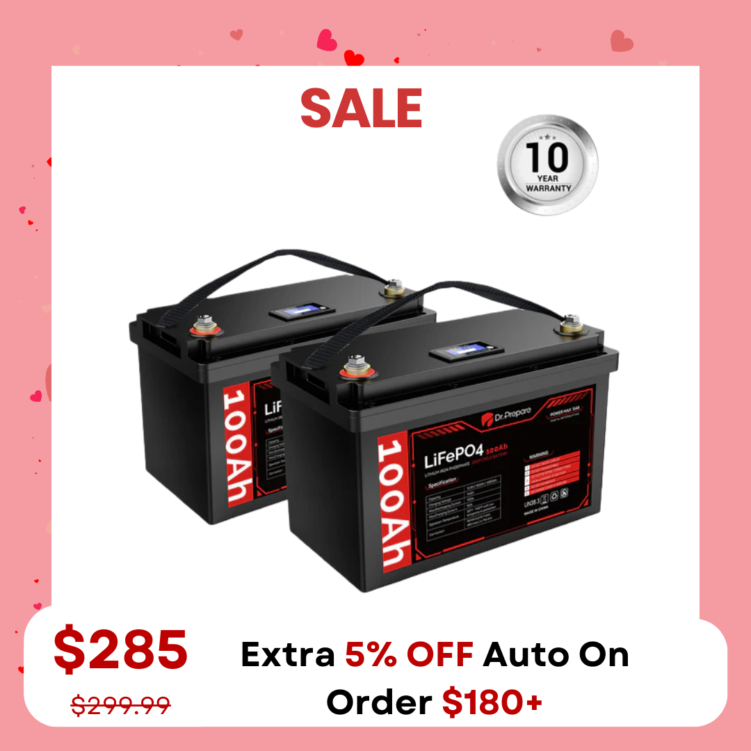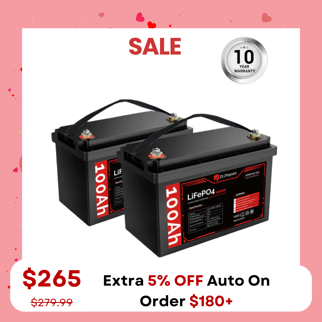 ![Multiple Packs 12V 100Ah LiFePO4 Lithium Battery with LED Screen - Connect In Series [10-Year Warranty]](http://drprepare.com/cdn/shop/files/S48SCX4_5553c50c-67d1-443d-bcec-a62aa92c32a7.png?v=1770278010&width=800)